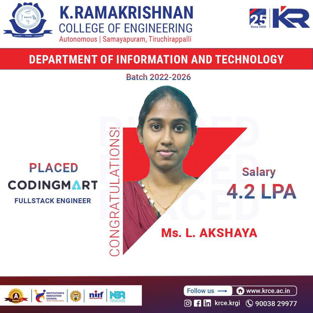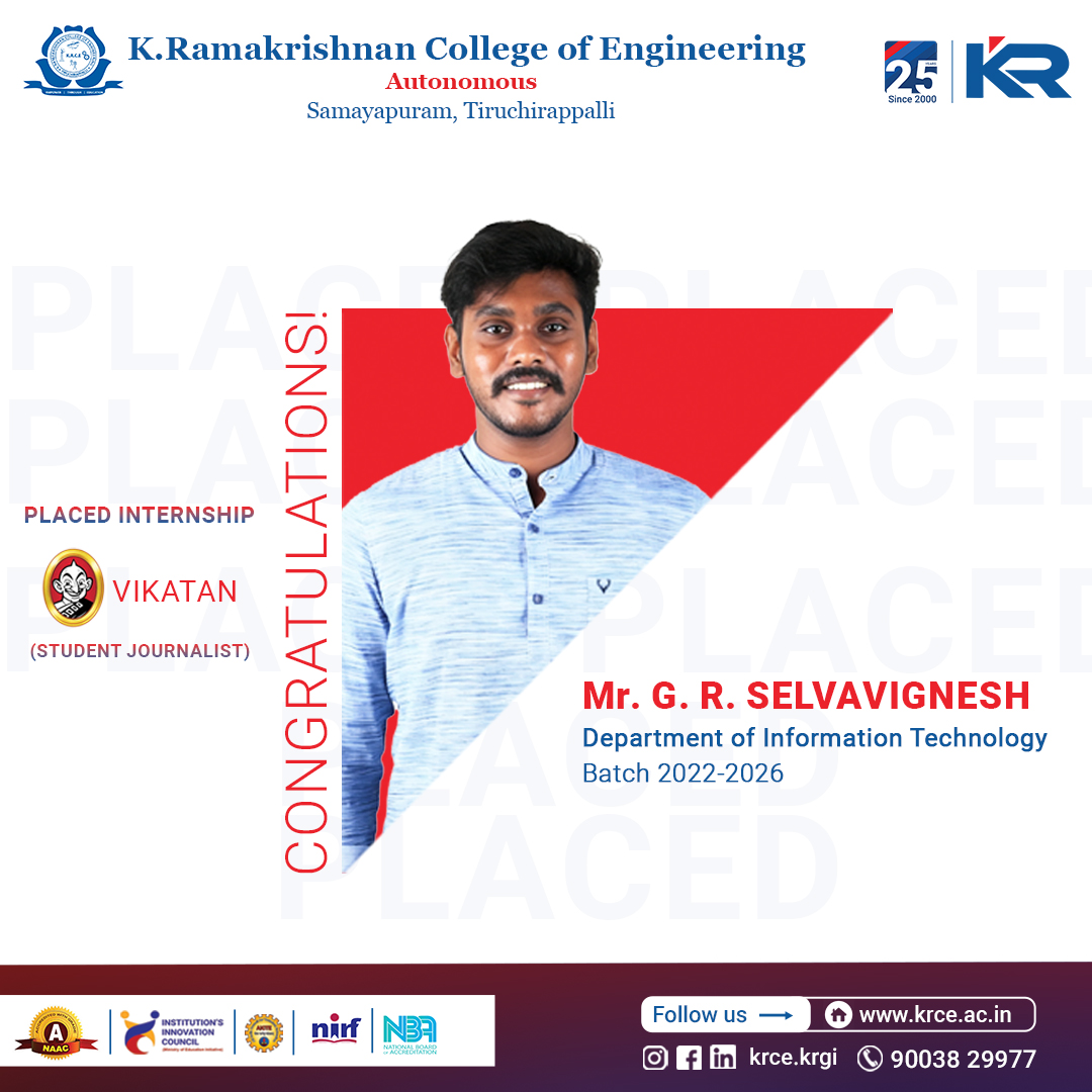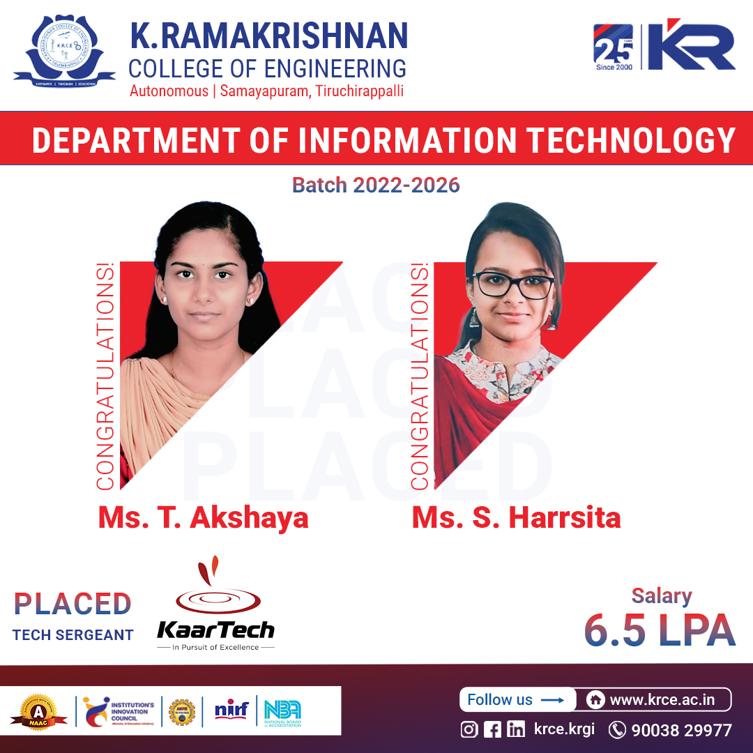 At K.Ramakrishnan Group of Institutions, we are committed to providing our students with the best opportunities to succeed in their careers. Our Training and Placement Cell plays a pivotal role in bridging the gap between academic knowledge and industry requirements, ensuring that our students are equipped with the skills, experience, and competencies needed to thrive in the professional world.